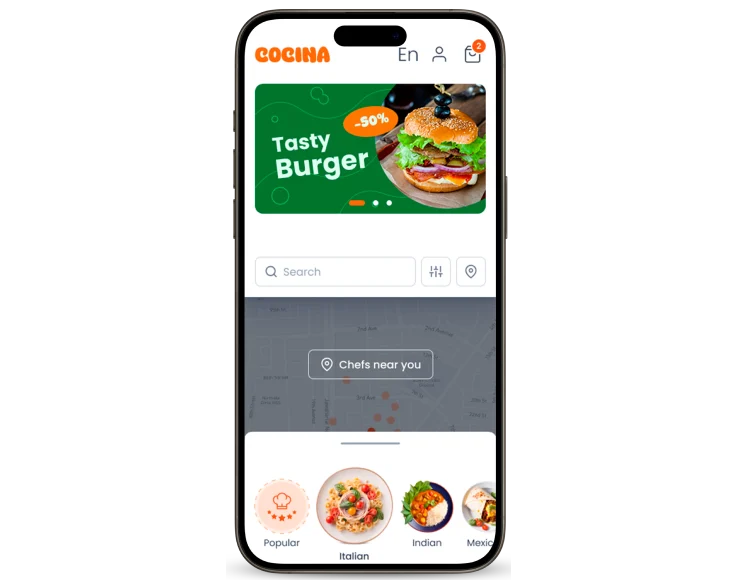 The client behind Cocina sought to create a distinct food delivery platform that stands out in the market by highlighting the talents of chefs and making authentic international cuisine easily accessible. The client’s vision was to build software that facilitated food delivery and allowed chefs to take control of their menus, ensuring that the meals delivered accurately represented their culinary artistry. This emphasis on authenticity and quality was central to the client’s goal of a premium food delivery app development.