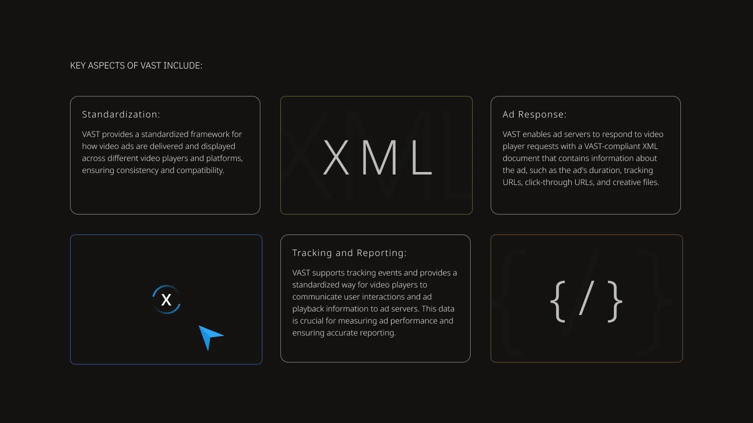 VAST (Video Ad Serving Template) is a standardized technology that ensures ads are delivered consistently across various video players and devices. It’s crucial for streamlining video ad campaigns and maximizing audience reach.