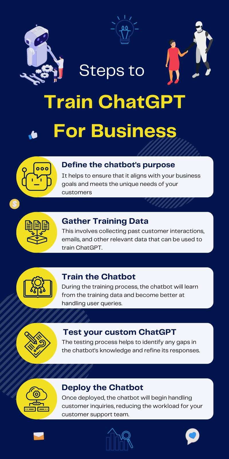 The final step is to deploy the chatbot. This involves integrating it with your website or app, making it available to your customers. Once deployed, the chatbot will begin handling customer inquiries, reducing the workload for your customer support team.